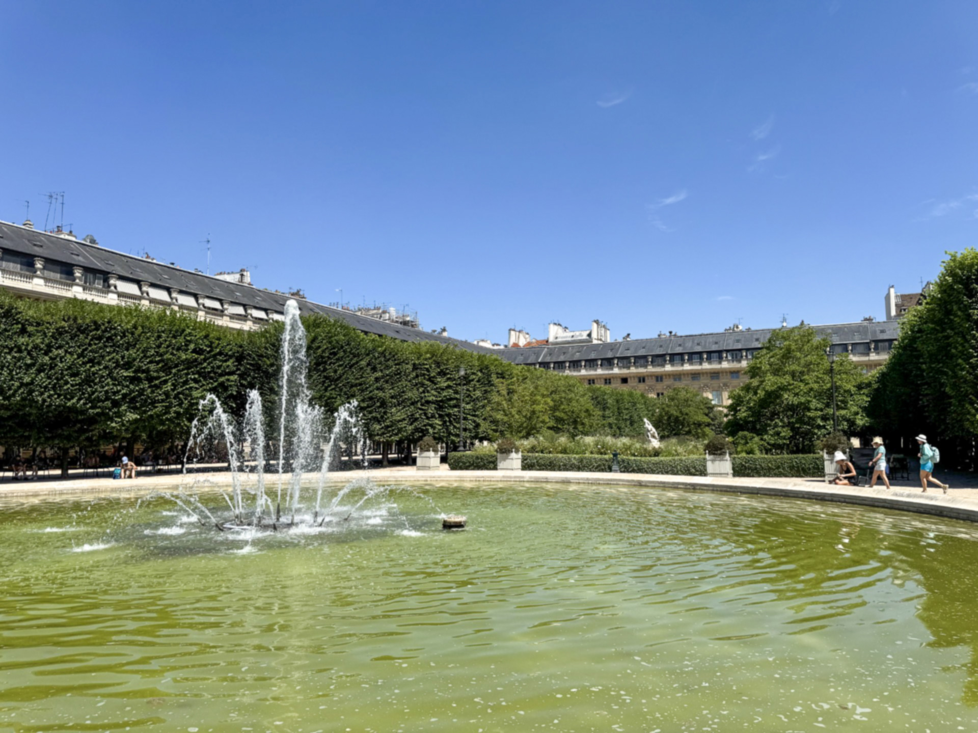ルーブル美術館近くのパレ・ロワイヤルを散策しました。急な暑さとなったパリでは、涼を求めて木陰で休む人々も多く見られました。