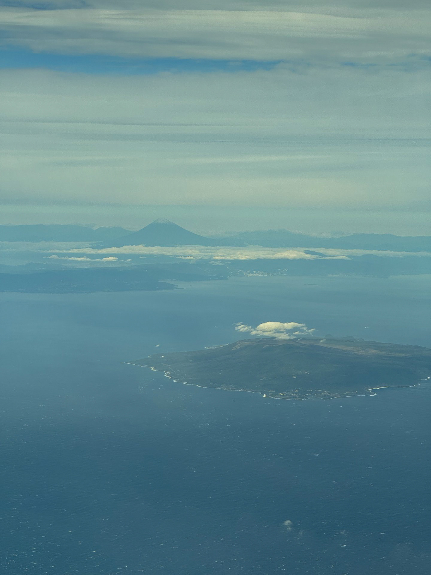 機内からは雄大な伊豆大島と富士山を見ることができました。